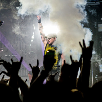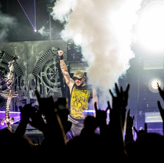 Upon arrival to the FIVE FINGER DEATH PUNCH concert at The Wells Fargo Center in Philadelphia, PA a note was seen posted upon the entry stating "PLEASE BE ADVISED: Five Finger Death Punch lead singer Ivan Moody has fallen ill. Phil Labonte, vocalist of All That Remains, and other special guests will perform with Five Finger Death Punch tonight." leaving fans skeptical on how Phil would perform tonight at the show. After watching some incredible sets from As Lions, SiXX:A.M., and Shinedown the moment has come to see if Phil can fill the shoes of Ivan Moody while he takes an absence to correct his health. Launching into their set with "Lift Me Up," and "Never Enough" before going into a Ivan chant as 5FDP's videographer filmed to send to Ivan after the show as stated by Chris Kael. Phil Labonte's vocals were 100% on point, flawless, and a the perfect choice made by 5FDP to have fill in during Moody's time of absence. Although Labonte is no newby, he fronts All That Remains and kills it and also has saved the day previously for Killswitch Engage filling in for their singer in 2010. Labonte's vocals sounding nearly identical to Ivan Moody's kept the crowd satisfied and gave them an extraordinary show. Labonte's stage presence was great, and I am sure inside he was very nervous being in front of such a massive crowd of loyal 5FDP fans who love Ivan Moody but the fans were very welcoming and gracious to him as he filled his spot on stage. Stay tuned to MusicMayhemMagazine.com for our show review & Photo Gallery of all the bands on the tour package!